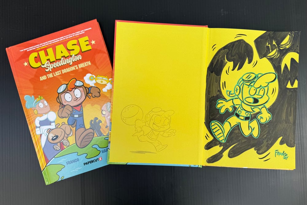 Original drawing by Franco on inside page of the Hardcover Book 1 of CHASE SPEEDINGTON and The Last Dragon’s Breath!